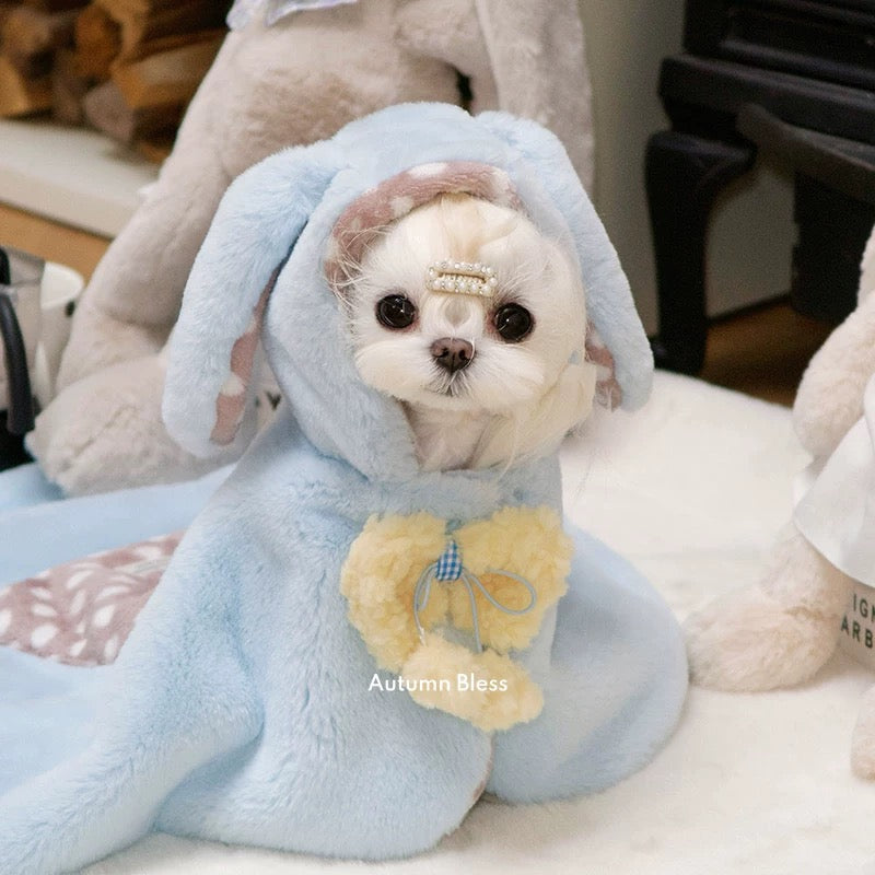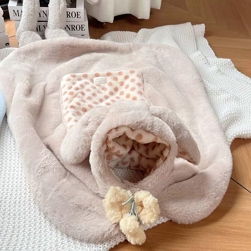 Autumn Bless Big Bunny Ears Portable Fleece Blanket Cape