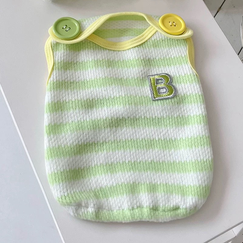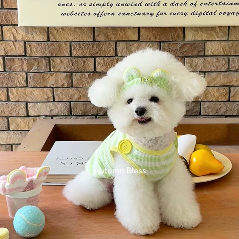 The Candy Button Knit Vest is made from soft, brushed knit fabric, perfect for keeping your pet warm and cozy. The pastel candy-colored stripes and playful button details add a sweet and charming touch. Ideal for stylish spring outings! 🍬✨