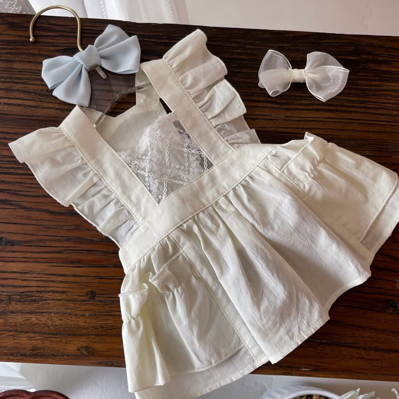 A pure cotton dress that is gentle on the skin and offers ultimate comfort. Featuring feminine ruffles and delicate lace detailing, it exudes elegance and charm. Perfect for both special occasions and everyday wear.
