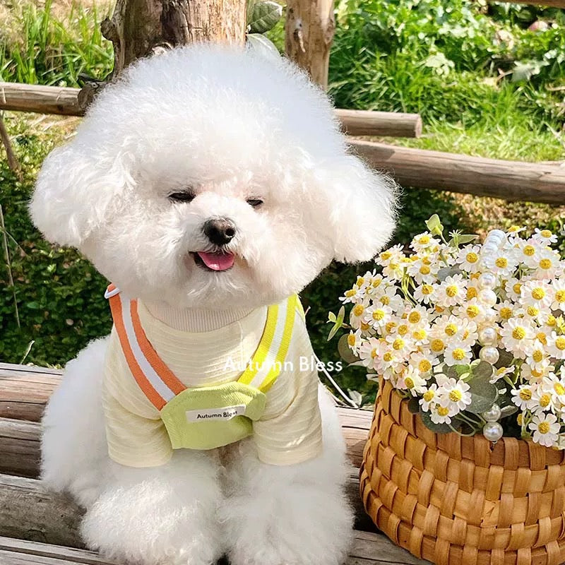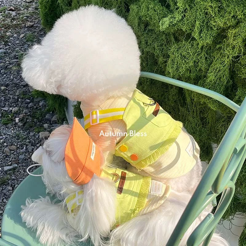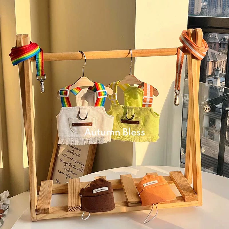 A stylish and comfortable twill harness featuring colorful rainbow straps . The fringe hem design adds a touch of cuteness!