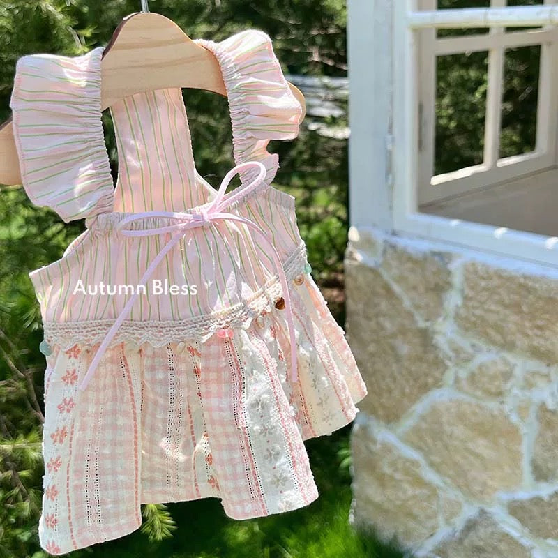 The combination of ruffled shoulder straps, delicate lace details, floral embroidery and gingham check creates a girly and gentle look.