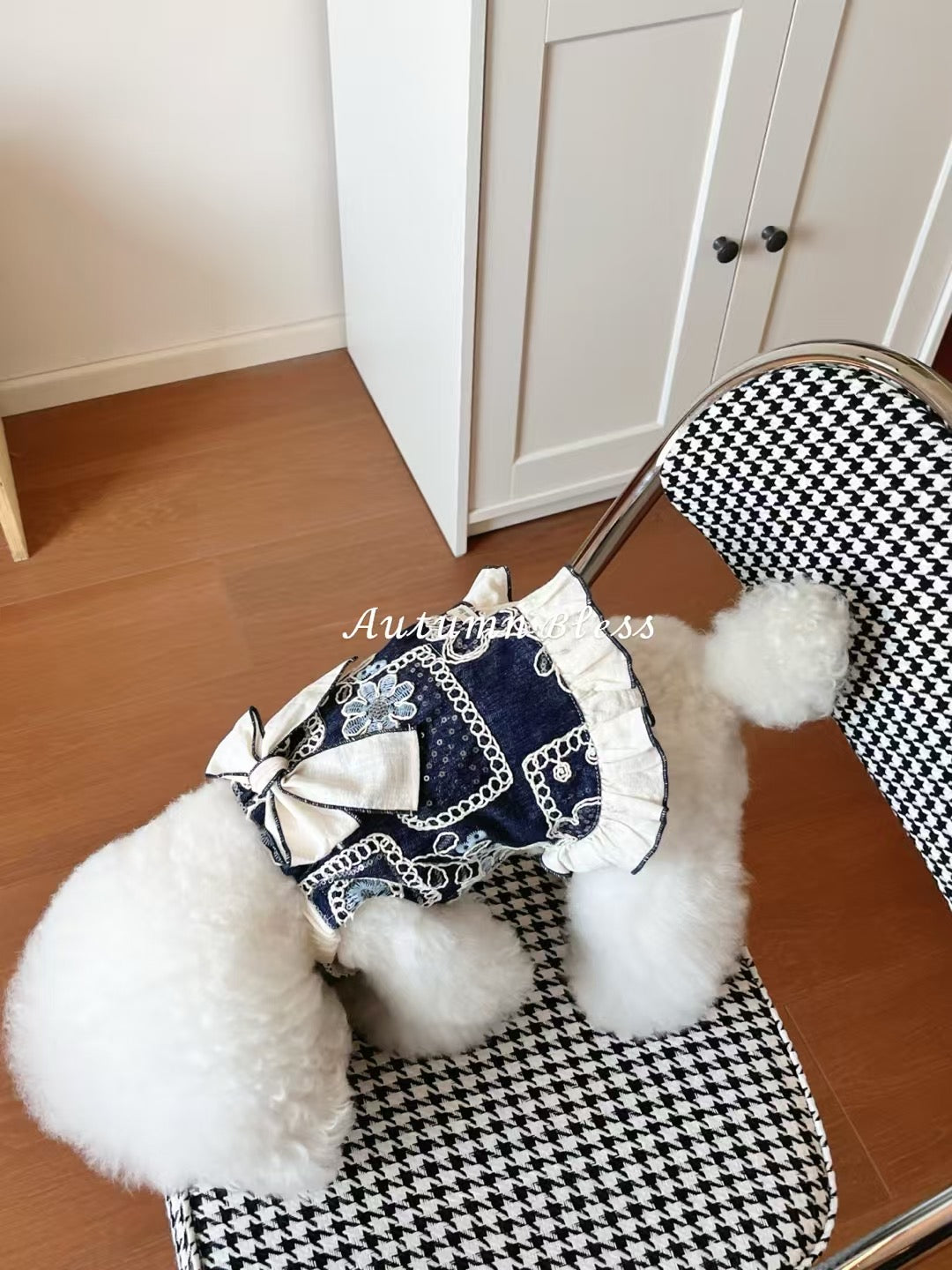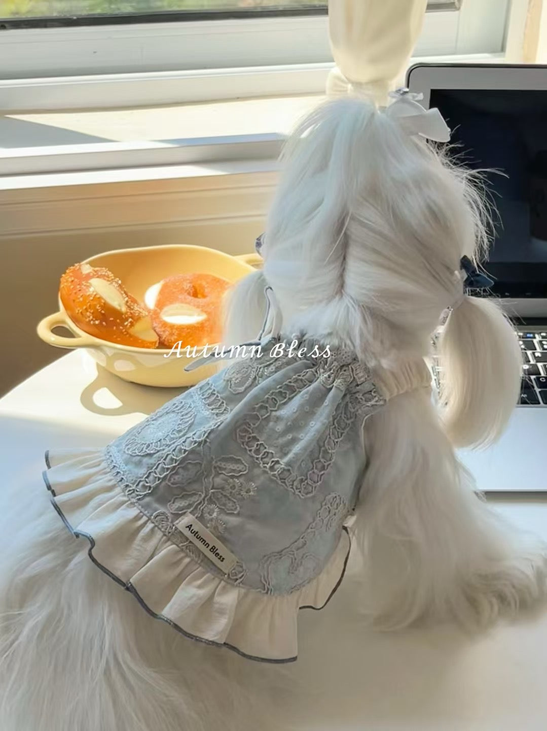 The delicate lace embroidery and ruffle design will further enhance your pet's charm.