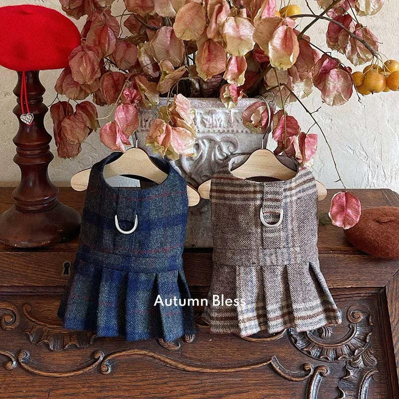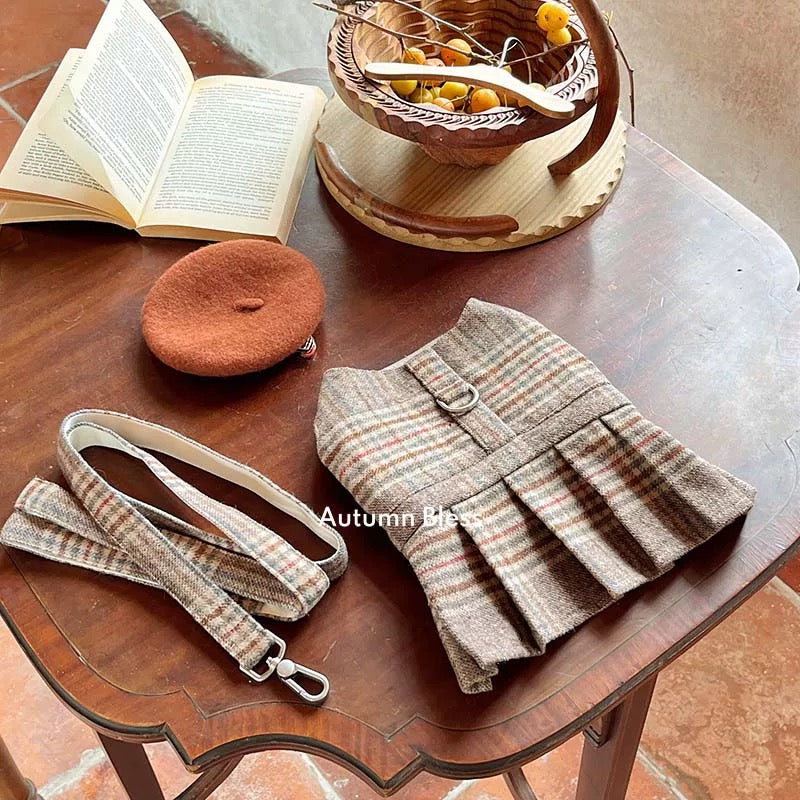 Keep your pup comfortable and stylish this fall with this cozy plaid fall harness dress for small dogs. Featuring a classic plaid pattern and a functional harness design, it's perfect for fall walks. Perfect for pairing with a beret in the same fabric for an extra glamorous touch.