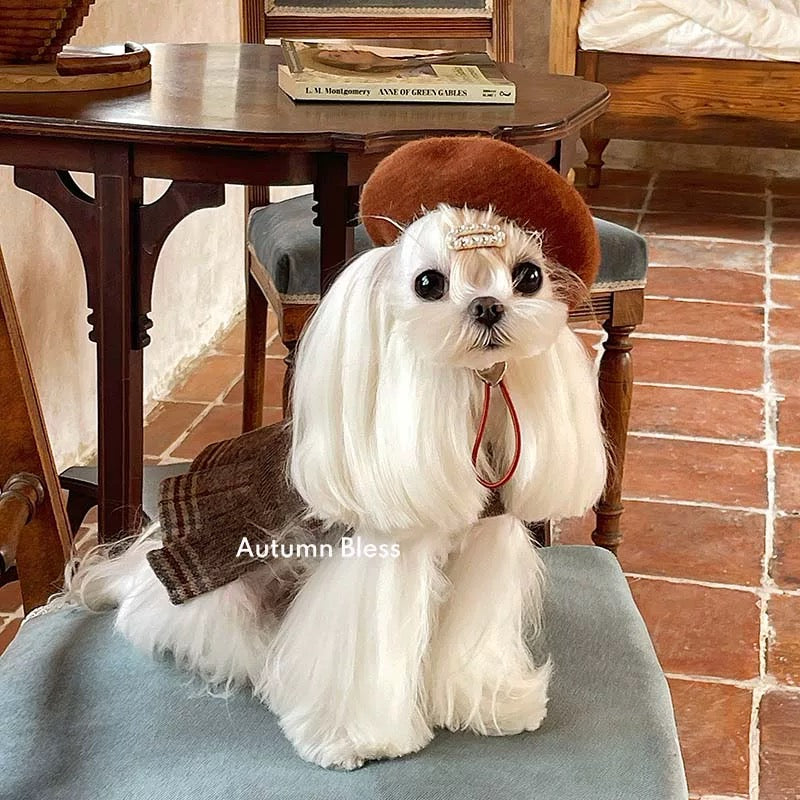 Keep your pup cozy and stylish this fall with our Cozy Checkered Fall Harness Dress for Small Dogs. Featuring a classic plaid pattern and functional harness design, it's perfect for autumn walks. Pair it with our matching fabric beret for an extra touch of charm!