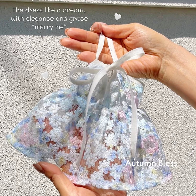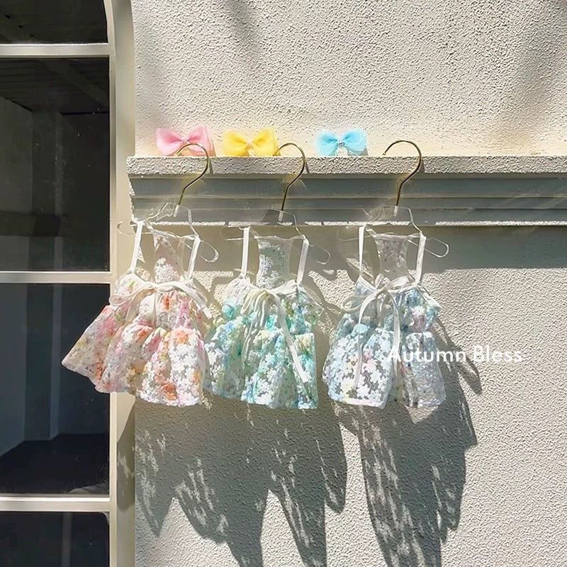 Autumn Bless Floral Lace Picnic Camisole Dress with Ribbon