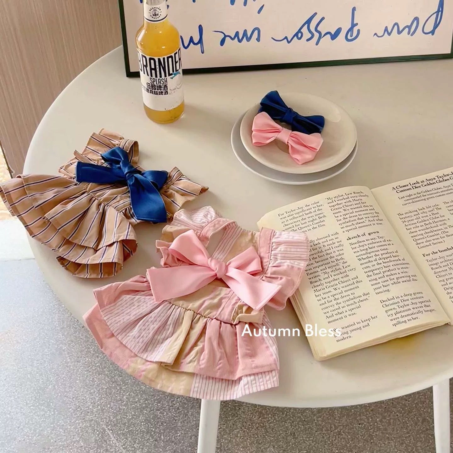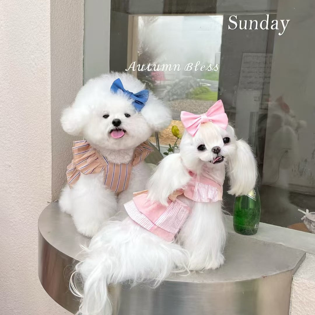 A charming striped ribbon dress, perfect for autumn strolls 🎀