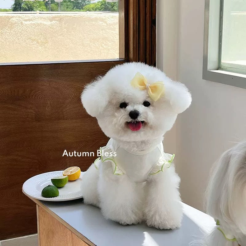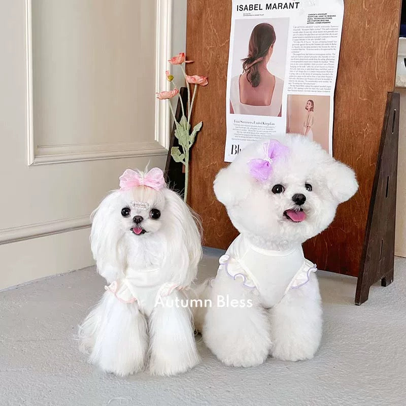 The ribbon embroidery and ruffle design add a feminine and cute touch.