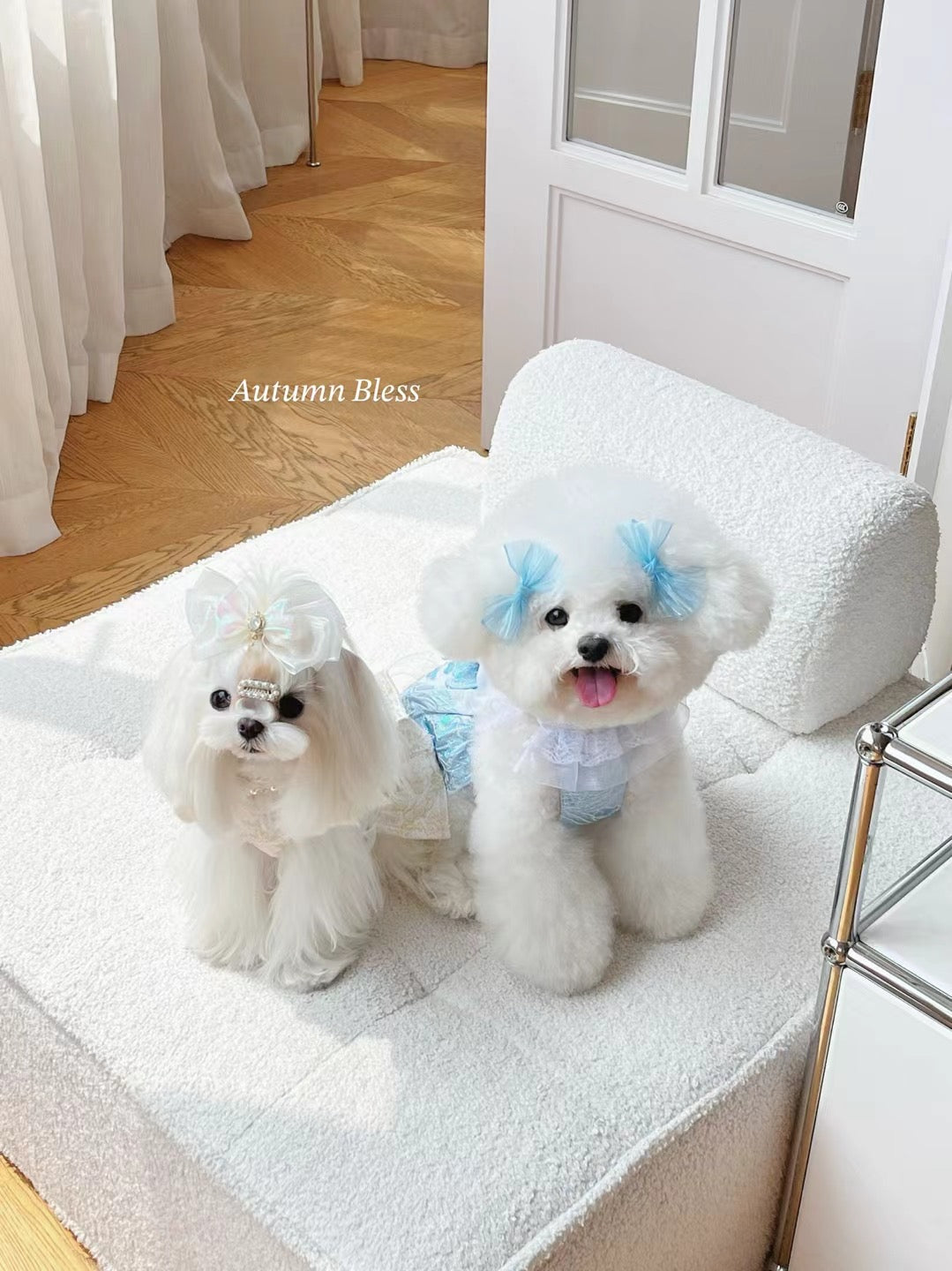 This beautiful harness set features a large elegant bow and flower design, perfect for small dogs. It also comes with a matching bow for a stylish and cute look. 🎀🌸✨