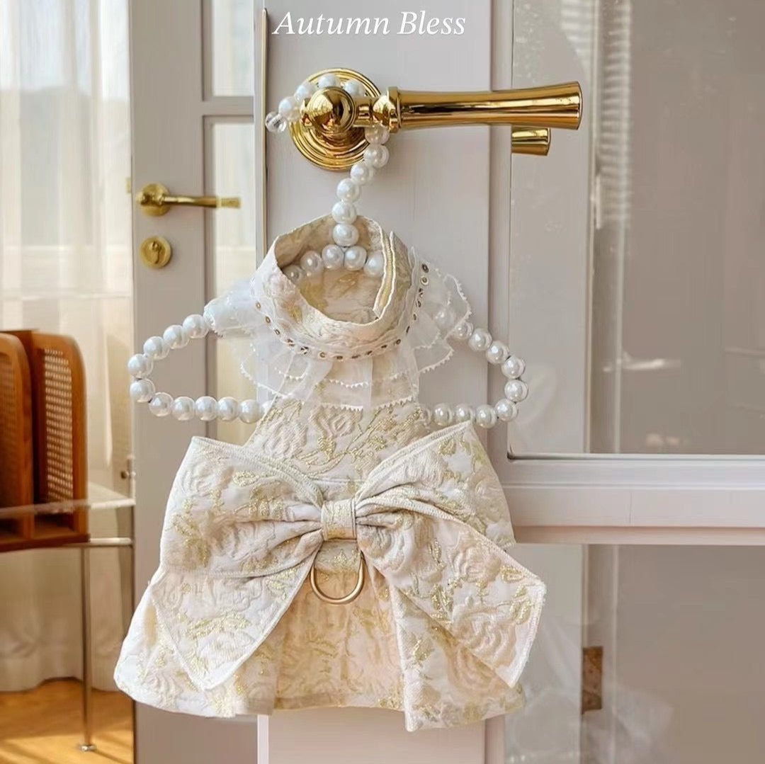 Autumn Bless Elegant Bow Harness Set for Small Dogs – Deluxe Floral Design with Ribbon